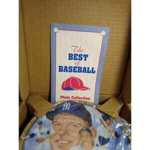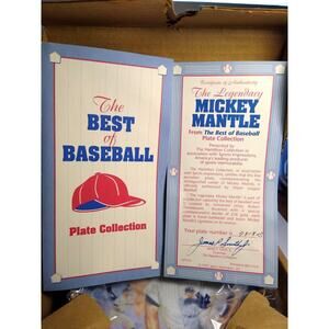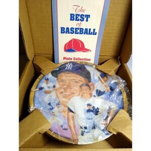 The product is a 1993 Mickey Mantle baseball plate by Hamilton Collection, featuring the New York Yankees player. This officially licensed vintage sports memorabilia item comes in its original box, certificate, and folder and is numbered limited edition. It was made in the United States and is a collectible piece for fans of Mickey Mantle and the New York Yankees.