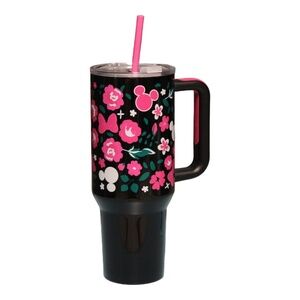 Disney Mickey & Minnie Floral Black Tumbler W/ Handle. 6 Hours Hot 12 Hours Cold. Hand Wash. NWOT