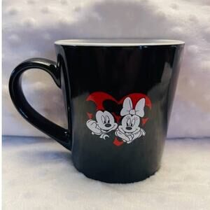 Brand new, Mickey & Minnie Hearts of Love 18oz Coffee Mug. Cute mug features Mickey & Minnie inside hearts on front and back of mug. Inside the mug features hearts made from Mickey/Minnie hands. Mug is dishwasher and microwave safe. Measures 4" across rim, 3 1/4" across base, & 4 1/4" tall. Comes from a smoke free, pet free home.