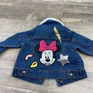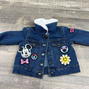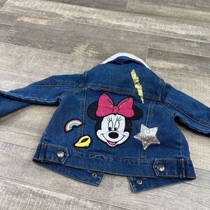 Mickey & Minnie Mouse Disney Girls Embroidered patch Jacket Faux Fur Retro 2T
