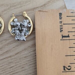 Mickey & Minnie Mouse Sitting In Hoop Earrings Disney Two Tone 3D