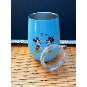 Brand new Mickey & Minnie teardrop shaped insulated cup with lid. Made of metal and can be for hot/cold. Lid tight secure fit ,opening allows straw, holds apprx 12 oz. Dishwasher top rack only, not to be used in microwave. Comes from smoke free, pet free home.