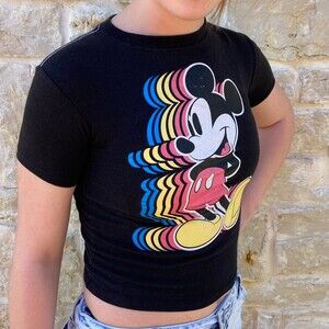 Mickey Mouse Baby Tee by Disney Junior Kids Sz 4 but Model is a Women's Small