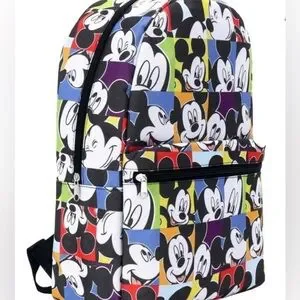 This Disney Mickey Mouse character color-blocked print backpack is a large size, checkered pattern and with a multicolor design.
