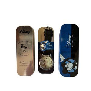 Mickey Mouse Big Face Watch Leather Band Collectors Tin SII Marketing Internat'l