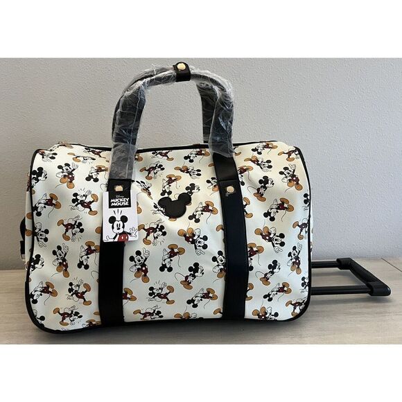 Mickey Mouse BioWorld 20” Rolling Ivory Duffle Bag Luggage Carry On NEW