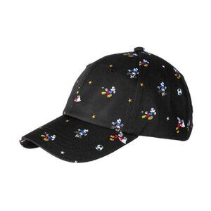 Featuring an all-over print of Mickey playing soccer, accented with stars and sports icons, this black cap is perfect for Disney fans, streetwear lovers, or anyone who wants a fun casual accessory. Lightweight and adjustable for a comfortable fit, it’s great for everyday wear, vacations, or as a collector’s piece.