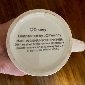 Mickey Mouse Christmas mug with figurine on the handle.
