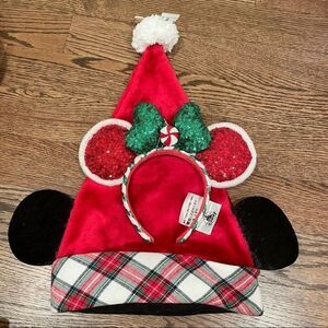 Mickey Mouse Plaid Santa Hat with Ears Disney Parks NEW with tags Adult Christmas Cap