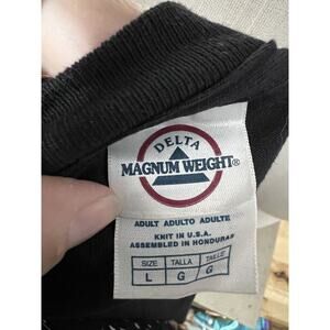 This Mickey Mouse Club Member T-Shirt in size Large Adult is part of the Delta Magnum Weight brand and features a design centered around Mickey Mouse Club. The shirt is suitable for both men and women, and is black in color. It is a contemporary collectible item within the Disneyana franchise.