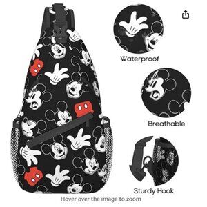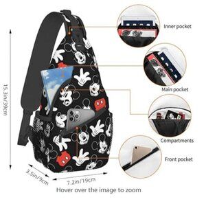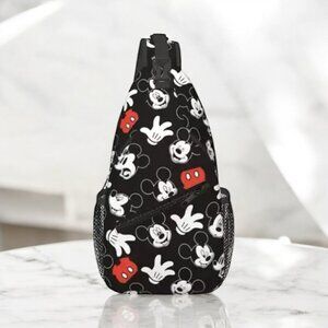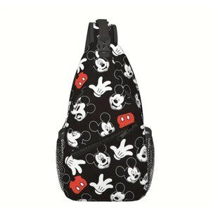 Large Capacity Disney Mickey and Minnie Cartoon Print Crossbody Bag, Nylon, Single Shoulder Chest Bag, Multi-Function, Zipper Closure, Mixed Color, Random Animal Print, Polyester Lining, with Hand Wash Instruction, for Men and Women Casual Outing