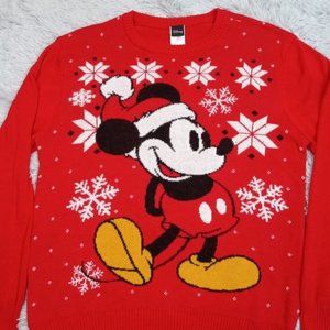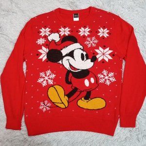 Mickey Mouse Disney Womens Sweater Red L Christmas Holiday Snow Cotton Blend
