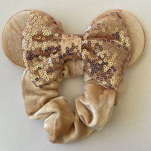 Mickey Mouse Ears Scrunchie Ponytail Holder with Sequins - Gold/Tan