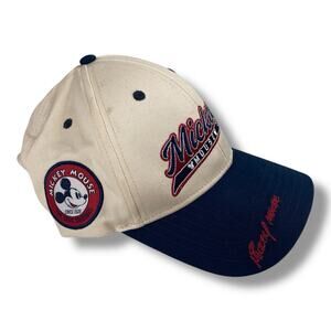 The product is an embroidered Mickey Mouse baseball hat featuring the beloved Disney character in navy blue, red, and khaki colors. Designed for adults, this adjustable cap is a must-have collectible for fans of Disneyana and Mickey Mouse. With its iconic design and high-quality stitching, this cap is a stylish and nostalgic addition to any fan's wardrobe. Perfect for showcasing your love for Disney in a casual and versatile accessory.