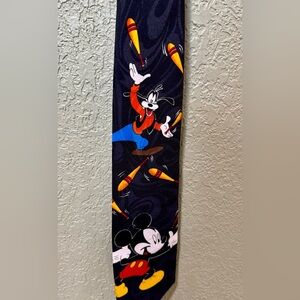 Charming Disney tie featuring Goofy and Mickey. Bold black background. Ideal for fans.