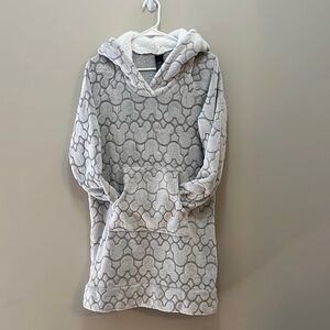 Disney Mickey Mouse Fleece Lounge Hooded top, Above Knee Tunic, Color: Grey Cozy Fleece with Mickie outline, Kangaroo Pocket, Sherpa Hood,