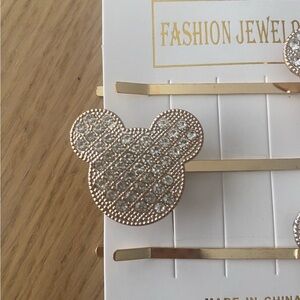 🆕Mickey Mouse Hair Clips Gold Tone W/ Rhinestones 3 PC🆕