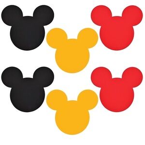 Mickey Mouse theme balloons - 5 confetti balloons, 3 black balloons, 2 red balloons, and 3 yellow balloons
