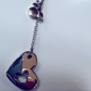 Mickey Mouse Heart SAQ Stamped Slide Drop Lariat Silver Tone Necklace