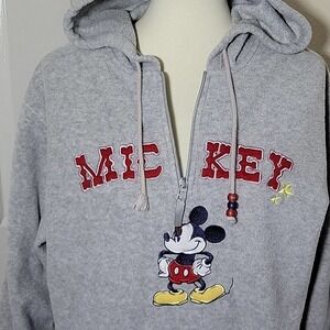 Mickey Mouse Hoodie Sweater Gray Fleece Pull Over Sweatshirt