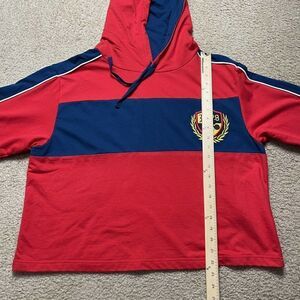 Mickey Mouse Hoodie Women XL Red Cropped Big Print Light Weight Sweater Ladies