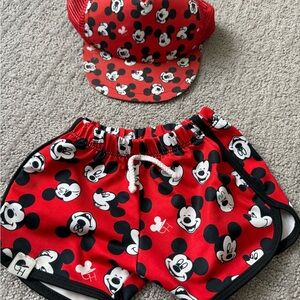 Charming red cap featuring a playful Mickey Mouse design. Ideal for adding a fun touch to any outfit.