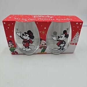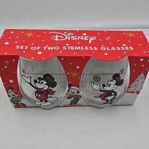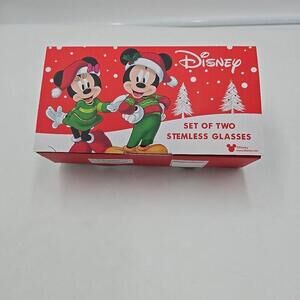 Get ready to add a festive touch to your collection with this Mickey Mouse & Minnie Mouse Glasses Stemless 2 NIB Holiday Glass set from Disney. The glasses are perfect for enjoying your favorite beverages and feature the iconic Disney characters in a holiday-themed design. Crafted with high-quality materials, these glasses are durable and long-lasting. They are a great addition to any Disney collection and make for an excellent gift for any Mickey Mouse or Minnie Mouse fan. Don't miss out on the opportunity to add this unique and charming set to your collection.