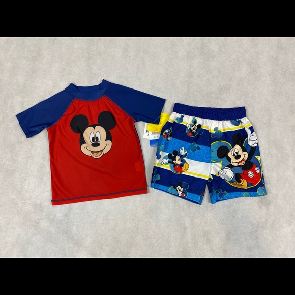 Mickey Mouse Raglan Rash Guard & Swim Trunks