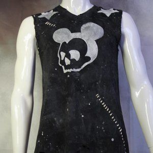 Mickey Mouse Skull Handmade Distressed Destroyed Ripped Altered Trashed Sleeveless shirt