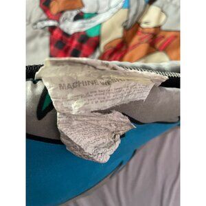 Slight wear on the fabric and tag is wrinkled, inside contents lumpy.