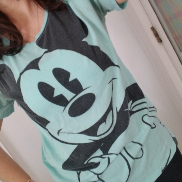 This is a tiffany blue trDitional Mickey Mouse t-shirt. Perfect for bedtime or during the day lounging around. ๐