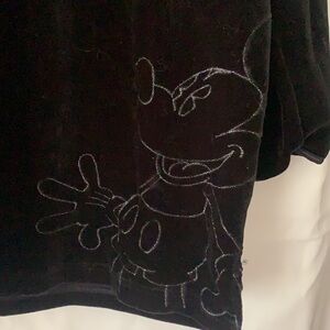 Mickey Mouse Velvet Shirt Black Long Sleeve Embroidered Pullover Vintage XL.
