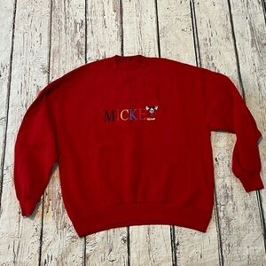 Mickey Mouse Vintage Red 1980s Stitched Cartoon Disney Pullover Sweatshirt