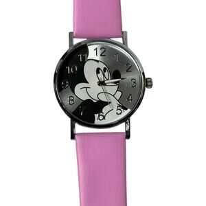 Mickey Mouse Watch Cartoon Face Silver with Pink Band Tested!