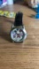 Stylish watch featuring Mickey Mouse. Black leather strap and silver casing.