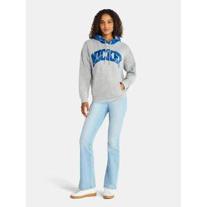 The Mickey Mouse Women's Plaid Hoodie in size M offers a relaxed fit and a gray wash color, perfect for the winter, fall, and spring seasons. Made of lightweight fleece fabric, this pullover hoodie features a crew neck, long sleeves, and a hood, making it ideal for activewear occasions. The hoodie is accented with the iconic Mickey Mouse logo, adding a touch of cartoon charm to your wardrobe. Machine washable and easy to care for, this hoodie is a comfortable and stylish choice for any Disney fan.