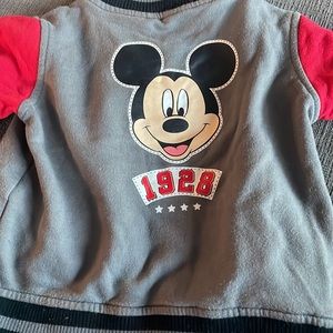 Adorable Mickey Mouse jacket with snap button closures. Sleeves are bright red with a grey chest. Functional front pockets. Lovingly worn
