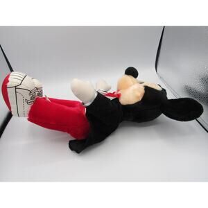 This is a vintage Mickey Mouse plush, released in 1988 as part of Walt Disney's Magic Kingdom on Ice attraction. Mickey is in a tuxedo and red slacks, with white sneakers. His measurements are about 14 x 5 x 4 inches.
