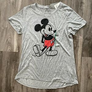 𝅺Womens Mickey Mouse Kick Short Sleeve Graphic T-Shirt Top Gray Size Medium.