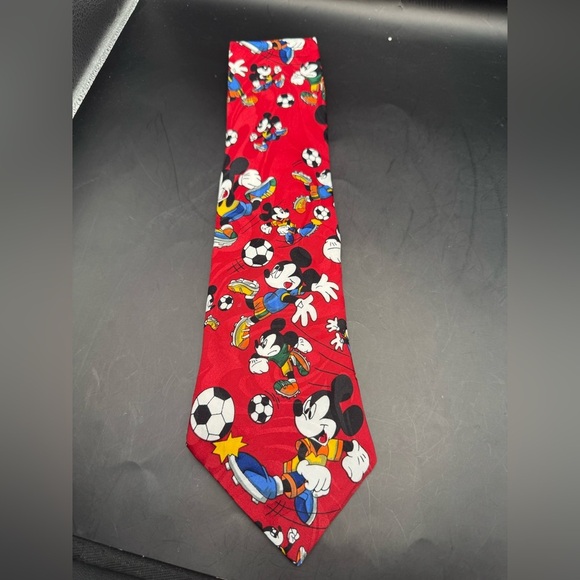 Mickey Unlimited Disney Mickey Mouse Playing Soccer Mens Necktie Red 52”L 4”W