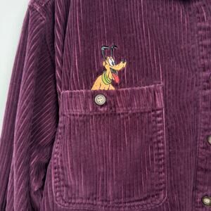 Mickey Unlimited Women's Corduroy Button Up Shirt Purple Embroiderd Size L