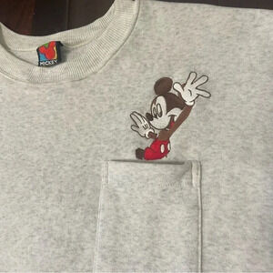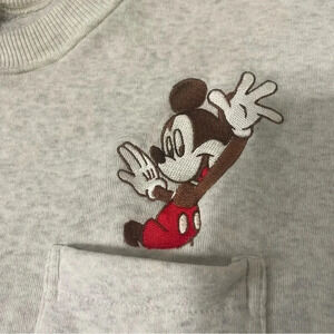 Mickey Unlmtd Disney Shirt Peek Pocket Long Sleeve Fleece Crew Neck Grey Mickey