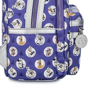 Carry your hopes and dreams into the second Disney century with this Loungefly mini backpack dedicated to our 100th Anniversary celebration. Mickey and the gang are all-gussied up for the occasion and comprise the polka dots on a cute, colorful carry-all. A dazzling Disney100 logo zip pull dangles from the front of this commemorative bag with ''platinum'' trims.
