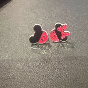 Cute Mickey and Minnie Mouse earrings in black and red. Perfect for Disney fans.