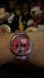 Charming watch featuring Mickey and Minnie Mouse on a pink face. Perfect for Disney fans. Stretchable Disney Mickey & Minnie Mouse watch. Works great. Needs battery. Tiny scratches throughout, not noticeable. No box, as is condition