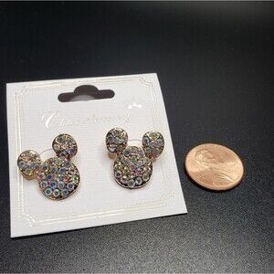 Mickey mouse gold trim irredescent earrings