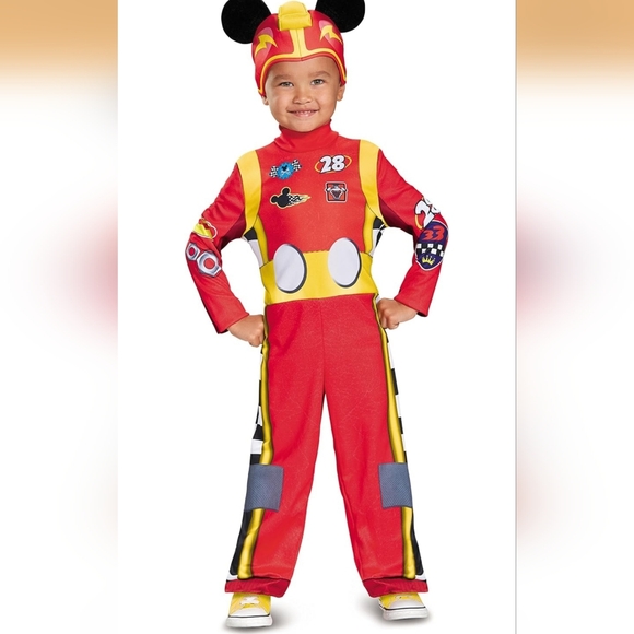 Get ready for high-speed fun with this vibrant race car driver costume. Featuring bold red and yellow colors, it's perfect for little racers. Comfortable and easy to wear, this costume will make playtime exciting.