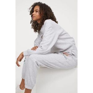 Ankle-length sweatpant joggers in cotton-blend fabric with a printed design. High waist, drawstring waistband with covered elastic, and side pockets. Covered elastic at hems. Soft, brushed inside. Polyester content is recycled.