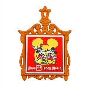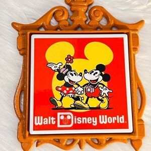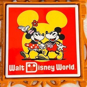 Nothing is too hot for Mickey and Minnie to handle. Use this retro metal and ceramic Walt Disney World trivet any time you need to set a culinary masterpiece down. Our famous couple stroll along the center section making it a great piece of décor too.