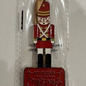 Festive nutcracker ornament in red and gold. Perfect for holiday decor. Disney World